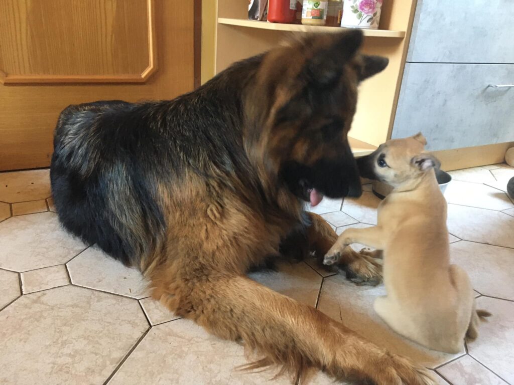 Alfie entwickelt sich zu einem souveränen, ausgeglichenen Whippet. Neugierig und offen allem Neuen gegenüber. Immer interessiert und mit einer harmonischen Bewegung. Kinder findet er genauso spannend wie andere Hunde. Er kennt das Zusammenleben mit Katzen und großen sowie kleinen Hunden.