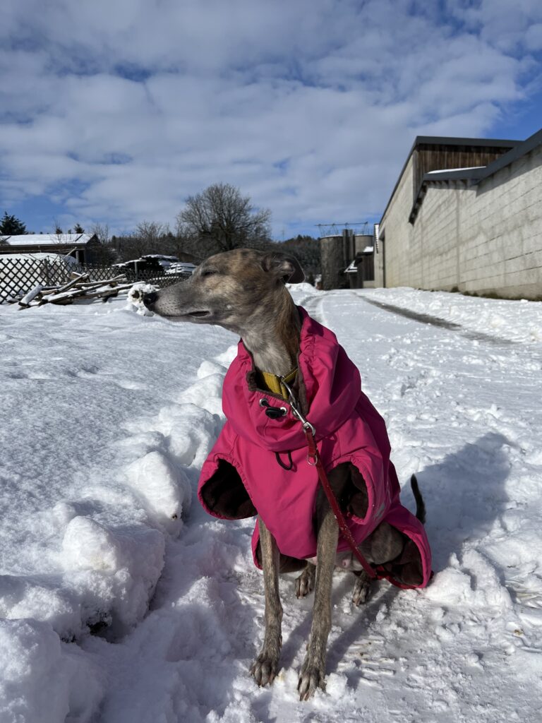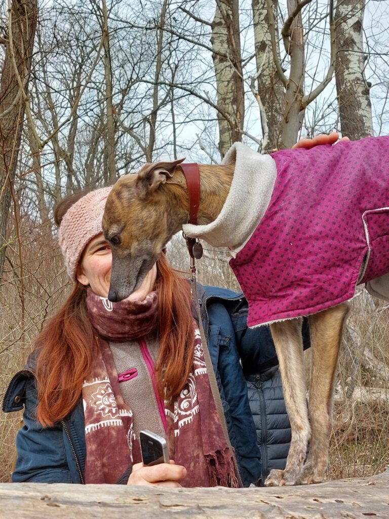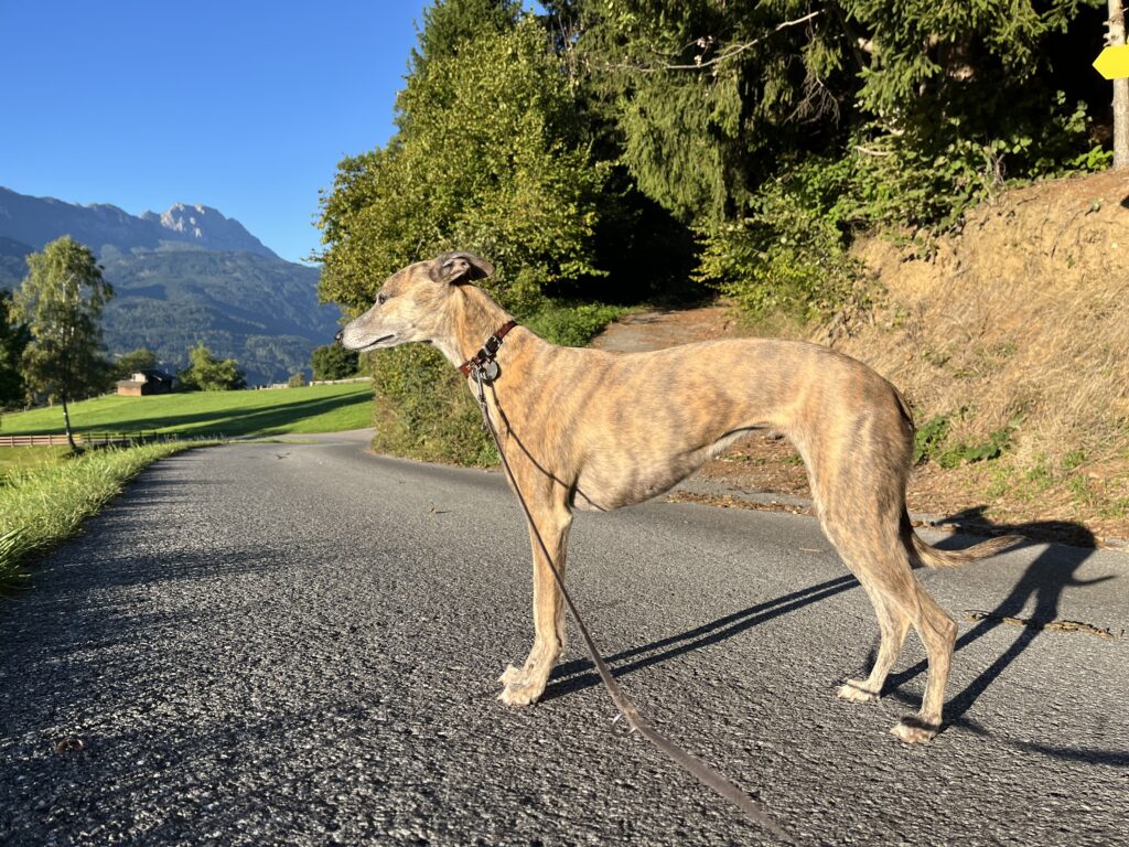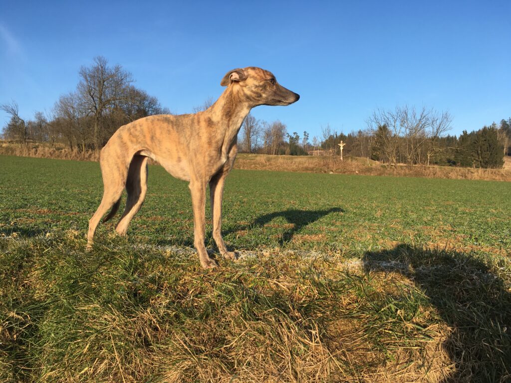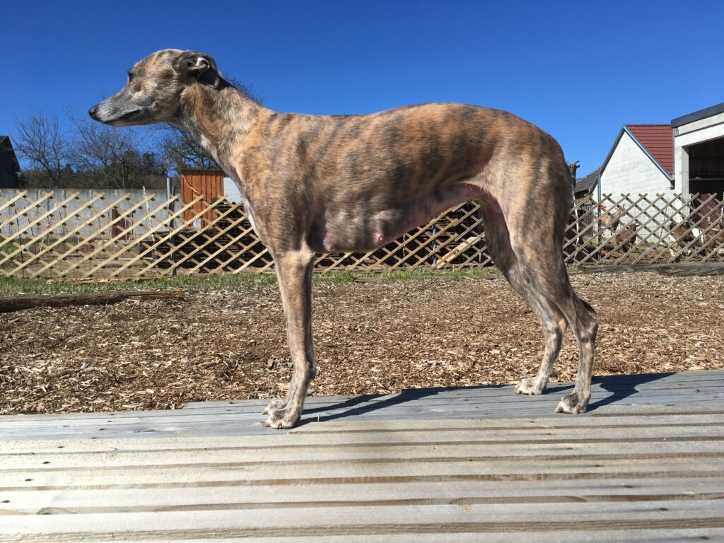 Sie ist während der Trainingszeit muskulös und zeigt eine große Leistungsbereitschaft. Sie ist feinfühlig und menschenbezogen. Auf der Rennbahn zeigt sie großes Potential, einzig die Entfernung zur nächsten Trainingsmöglichkeit hindert sie daran Spitzenleistung zu bringen. Zusammen haben wir die Freude und den Spaß auf der Rennbahn als unser Hobby gefunden. Bei uns zu Hause ist aufgrund der hohen Wilddichte ein Freilauf nur zu gewissen Tageszeiten möglich. Obwohl sie sehr gut abrufbar ist, will ich sie doch nicht in die Situation bringen, dass sie Wild als jagdbar erachtet. Aufgrund ihres sehr guten Gehorsams kann ich ihr viele Freiheiten gewähren und viele Spaziergänge können ohne Leine stattfinden.
